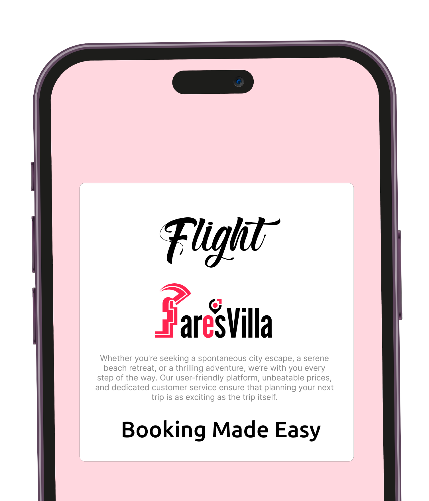 Sleek user designAt Faresvilla, we believe travel is more than just a getaway – it’s an experience that stays with you long after you’ve returned from your trip. Born out of a passion for seamless journeys and unforgettable adventures, Faresvilla is your ultimate travel partner. We’re here to make your dream destinations a reality, offering a wide range of options from flights and hotels to curated vacation packages that suit your unique style.